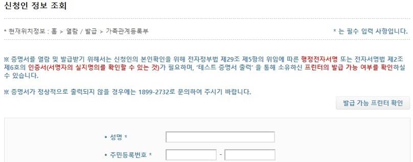 민원24시 가족관계증명서 발급 방법