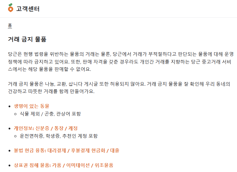 - 신고 기능: 당근마켓은 안전한 거래 환경을 조성하기 위해 신고 기능을 제공합니다. 사용자는 거래 상대방의 부적절한 행동이나 사기 의심 상황을 신고할 수 있으며, 고객센터는 이러한 신고 내용을 바탕으로 필요한 조치를 취합니다.