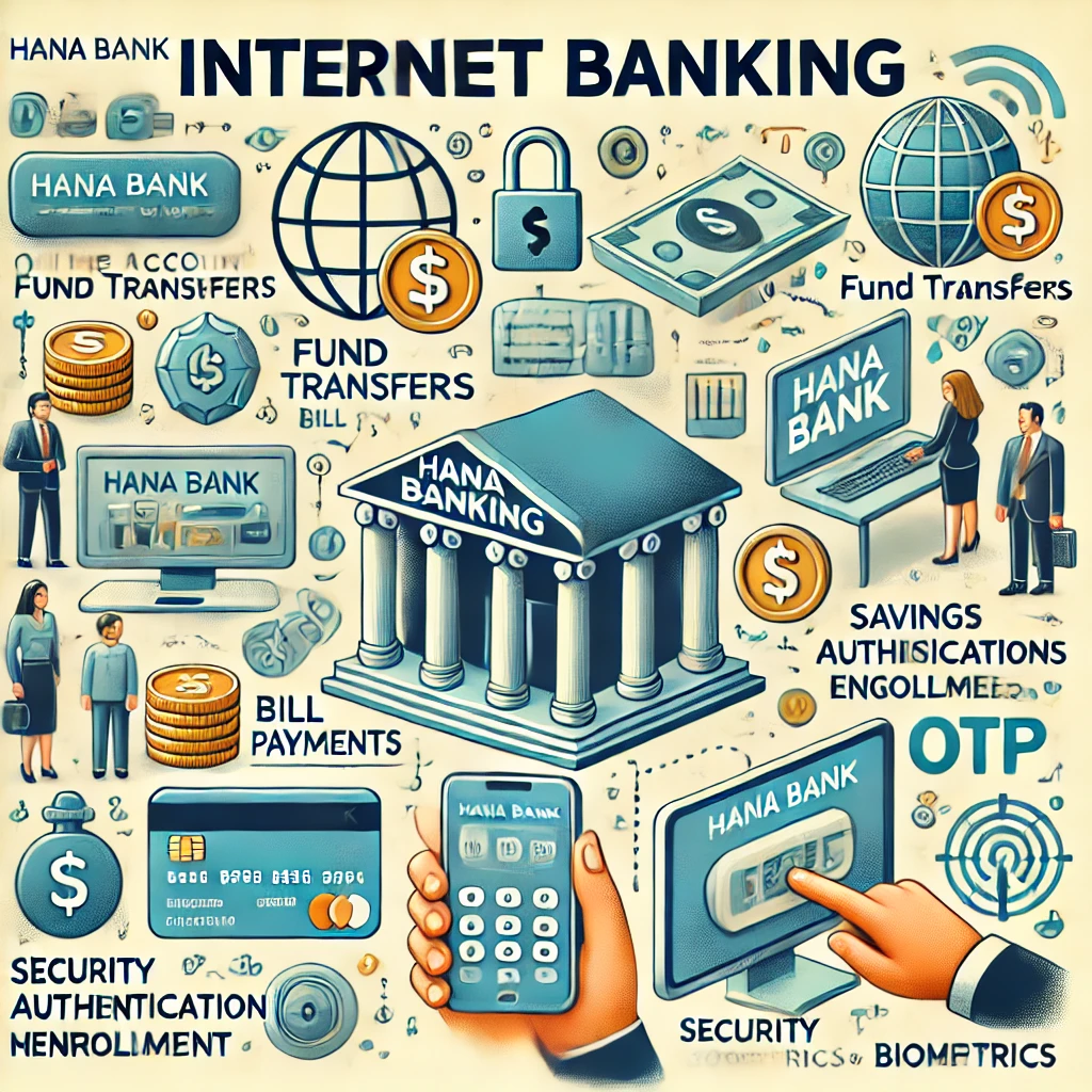 하나은행 인터넷뱅킹은 고객들이 집이나 사무실에서 손쉽게 금융 업무를 처리할 수 있도록 다양한 기능과 높은 보안성을 제공하고 있습니다. 계좌 조회, 송금, 공과금 납부, 예적금 가입 등 일상적인 금융 업무를 간편하게 처리할 수 있으며, 이러한 기능들은 고객들의 금융 생활을 더욱 편리하게 만들어 줍니다. 또한, 비대면 인증과 보안 서비스가 강화되어 고객의 금융 정보를 안전하게 보호하고 있습니다.
