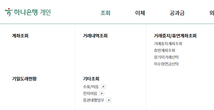 하나은행 인터넷뱅킹 주요 기능