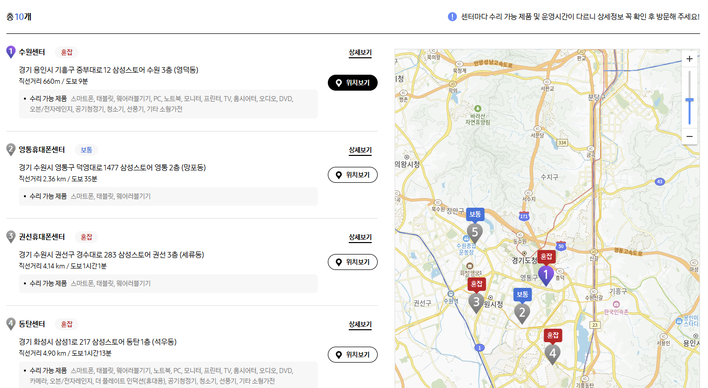 - A/S 신청: 고장이 발생한 경우, 고객센터를 통해 수리 신청 및 방문 서비스 예약이 가능합니다.