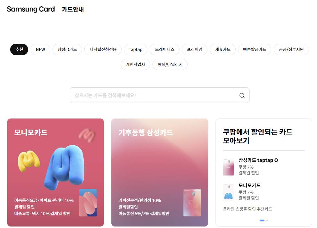 삼성카드 홈페이지 바로가기 (samsungcard.com)