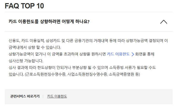 - 한도 및 결제 관리: 카드 한도 증액 신청 및 결제일 변경.