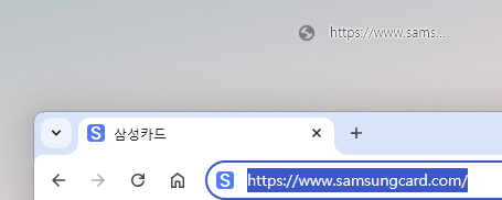 - 주소창에 "www.samsungcard.com"을 입력한 후 엔터를 누릅니다.