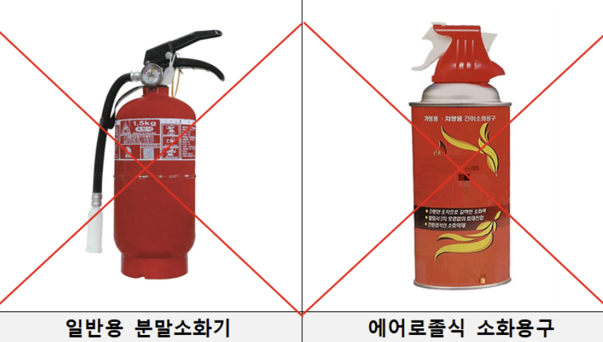 따라서 2024년 12월 이전에 이미 등록된 차량은 의무 적용 대상이 아니지만, 차량 화재 예방을 위해 소화기 설치를 권장합니다.