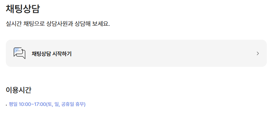 - 상담사 연결: 평일 오전 9시 ~ 오후 6시