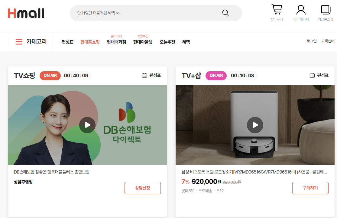 현대홈쇼핑 홈페이지 바로가기 (hmall.com)