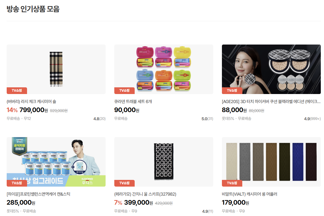 남성복, 여성복, 아동복, 화장품, 헤어케어 등 최신 트렌드를 반영한 제품들을 확인하고 구매할 수 있습니다. - 가전 및 디지털 기기