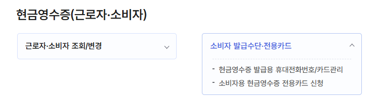 | 발급 수단 관리 | 휴대전화번호나 현금영수증 카드를 등록하여 발급 시 자동 연동되도록 설정할 수 있습니다. |