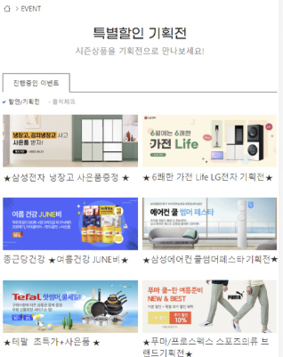 - 특정 상품군의 추가 할인 행사(가전제품 특가, 건강식품 할인 등).