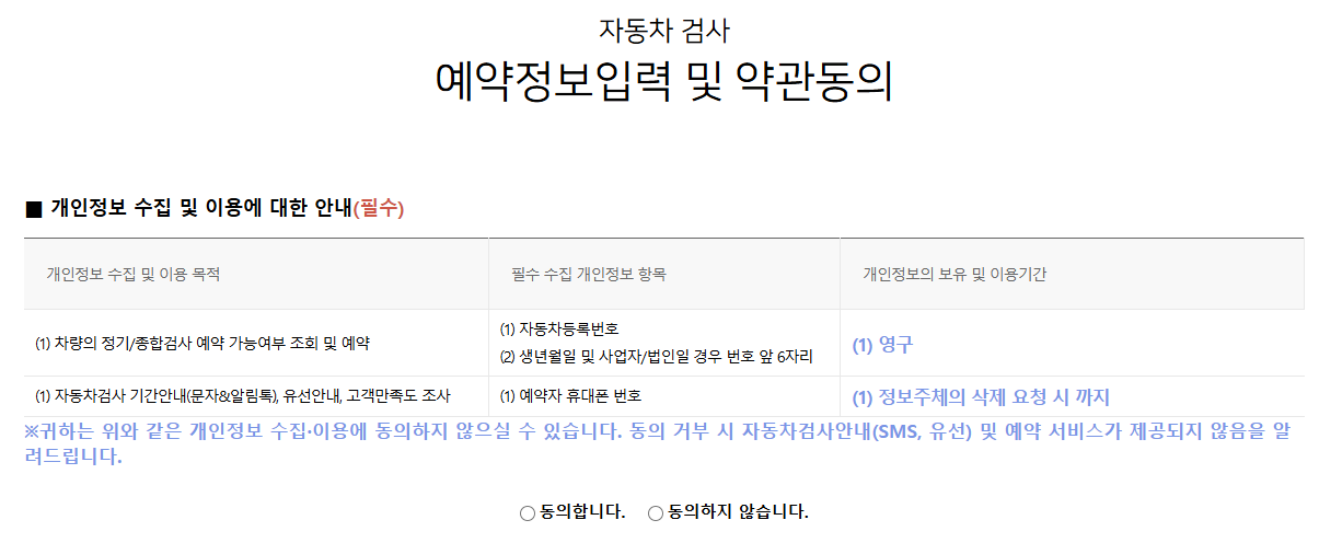 - 차량 정보를 입력한 후 가까운 검사소를 검색하고 예약 가능한 시간을 확인합니다.