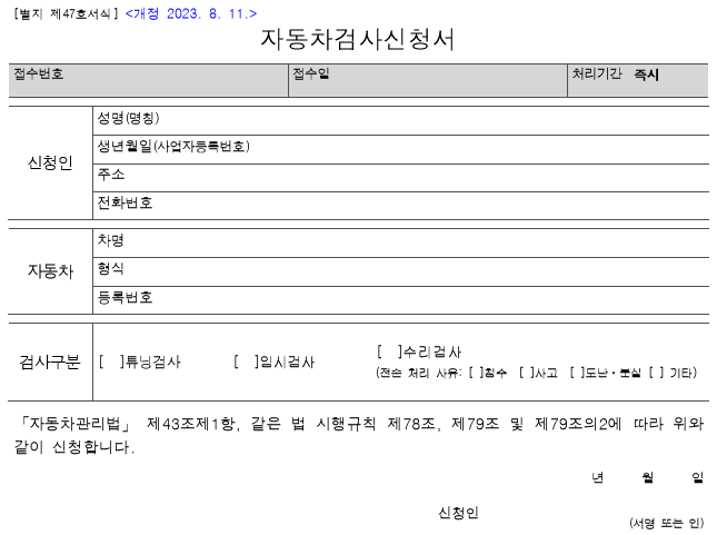 - 배출가스 측정과 소음 테스트가 포함될 수 있습니다.