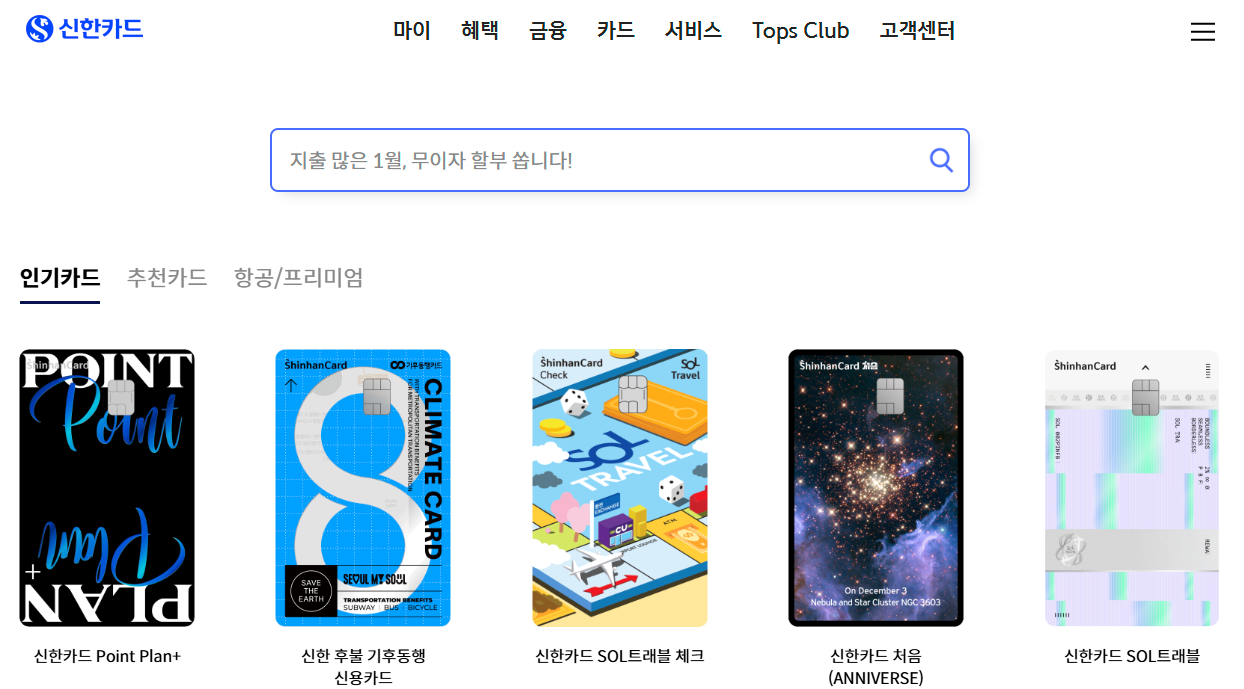 - 카드 대출: 신한카드의 다양한 대출 상품을 비교하고 신청할 수 있습니다.