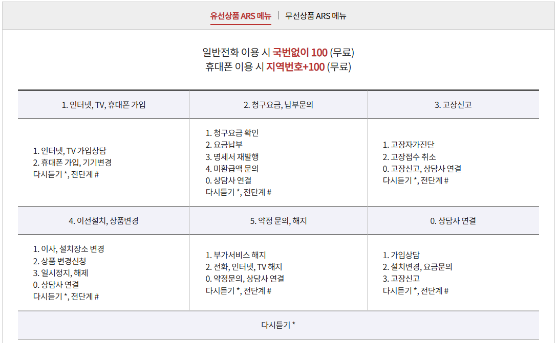 - 고장 신고 및 통화 품질 상담: 24시간 가능