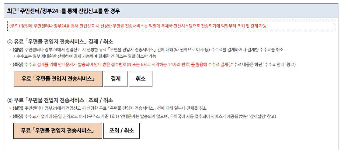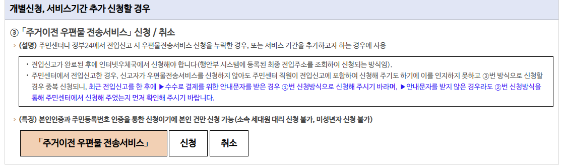또한, 특정 우편물은 전송되지 않을 수도 있습니다. 예를 들어, 법적 효력이 있는 내용증명이나 일부 금융 관련 우편물은 변경된 주소로 자동 전송되지 않을 수 있으므로, 개별적으로 주소 변경을 진행해야 합니다.