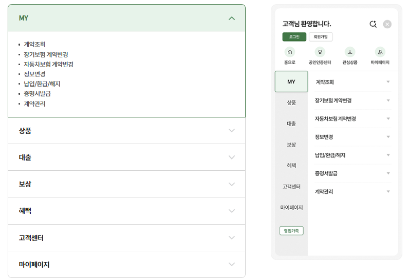 - 일반적인 계약 변경, 보험금 청구는 온라인을 이용하는 것이 편리함