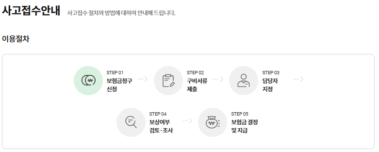 - 실손보험, 자동차보험, 화재보험 등 보험금 지급 신청 및 진행 상황 확인