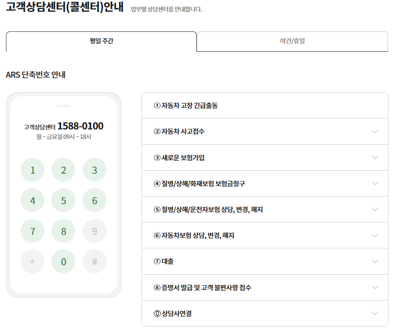 📞 자동차 사고 접수: 1588-0100 (24시간 운영)