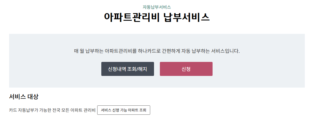 - 일부 카드사는 관리비 자동납부 서비스 미제공