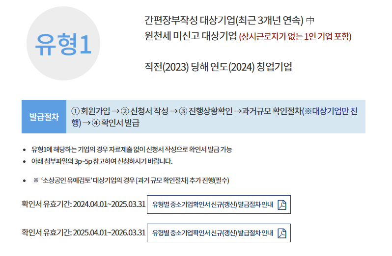 - 참고: 소상공인 확인 대상 업종은 중소기업기본법 시행령에서 정의된 업종에 따라 다를 수 있습니다.