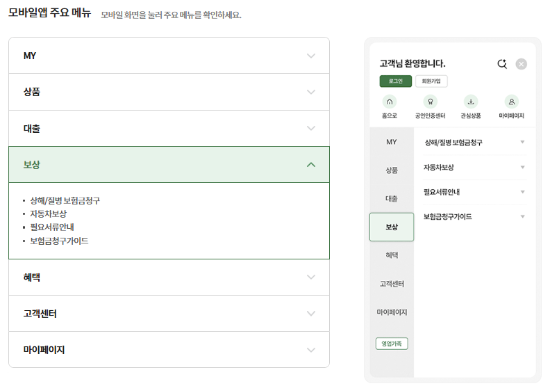 - ‘보험금 청구’ 메뉴 선택