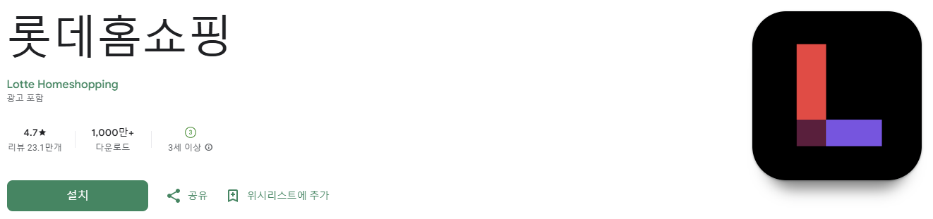 - ‘롯데홈쇼핑’ 검색 후 다운로드 및 설치