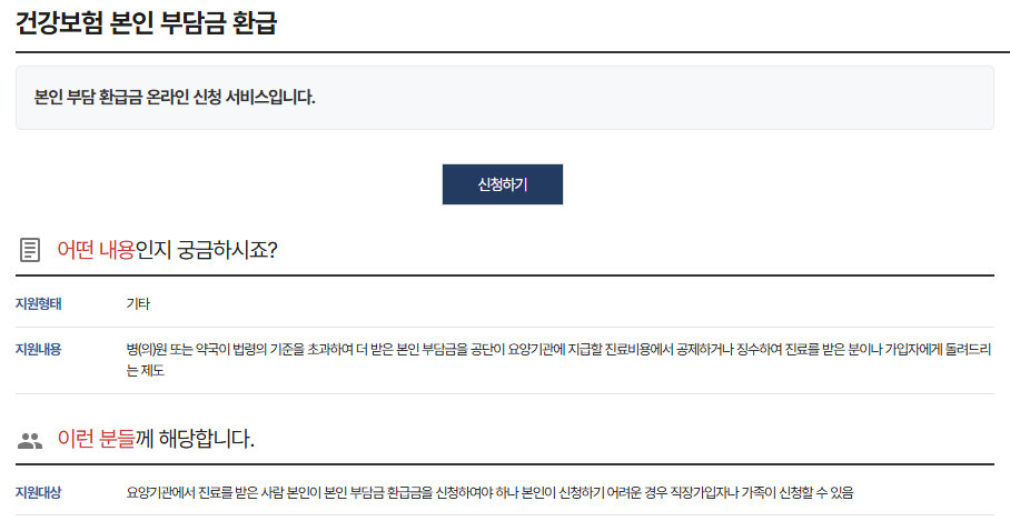 | 대상 | 과다 납부한 진료비(중복 납부 등) | 급여 대상이 비급여로 처리된 경우 등 확인 필요 |