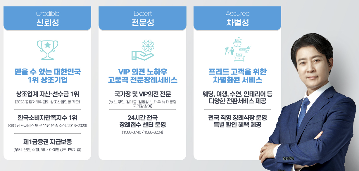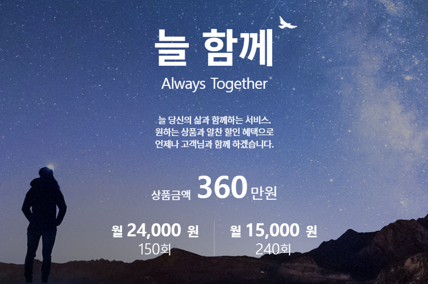 | 늘 함께 | 15,000원 × 240회 | 기본 장례 서비스 제공, 고인 리무진 및 유족 버스 지원, 상복 대여 포함 |