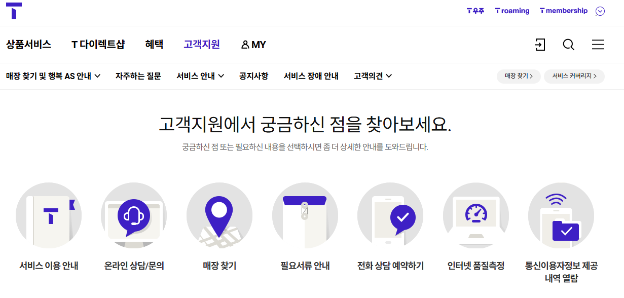 요즘은 전화보다 온라인을 선호하는 고객들도 많아졌죠. SKT에서는 고객센터를 통해 처리할 수 있는 업무 대부분을 ‘T월드’ 앱 또는 공식 홈페이지에서도 제공하고 있습니다. 특히 다음과 같은 업무는 굳이 전화 상담 없이도 손쉽게 해결할 수 있습니다.