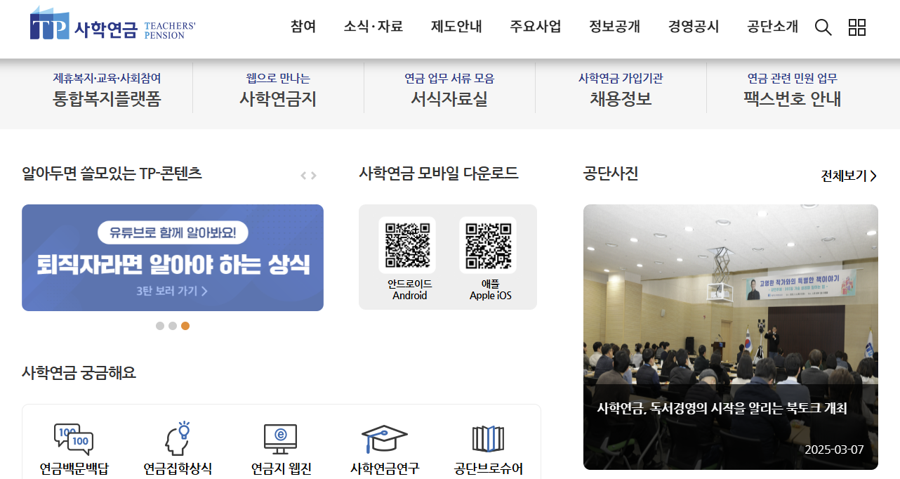 사학연금관리공단 홈페이지 (www.tp.or.kr)