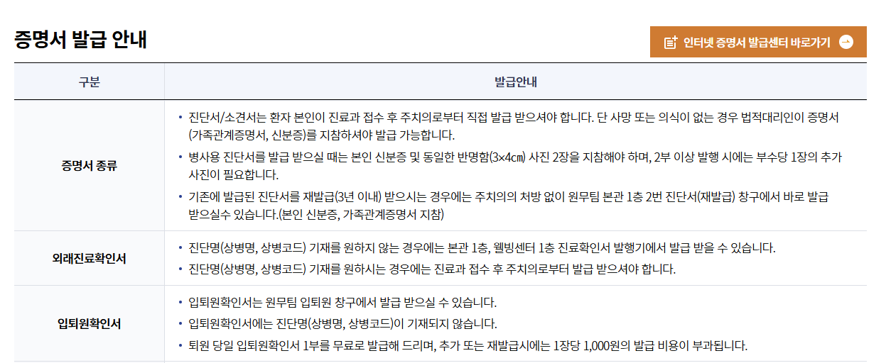 진료확인서 비용 비교표