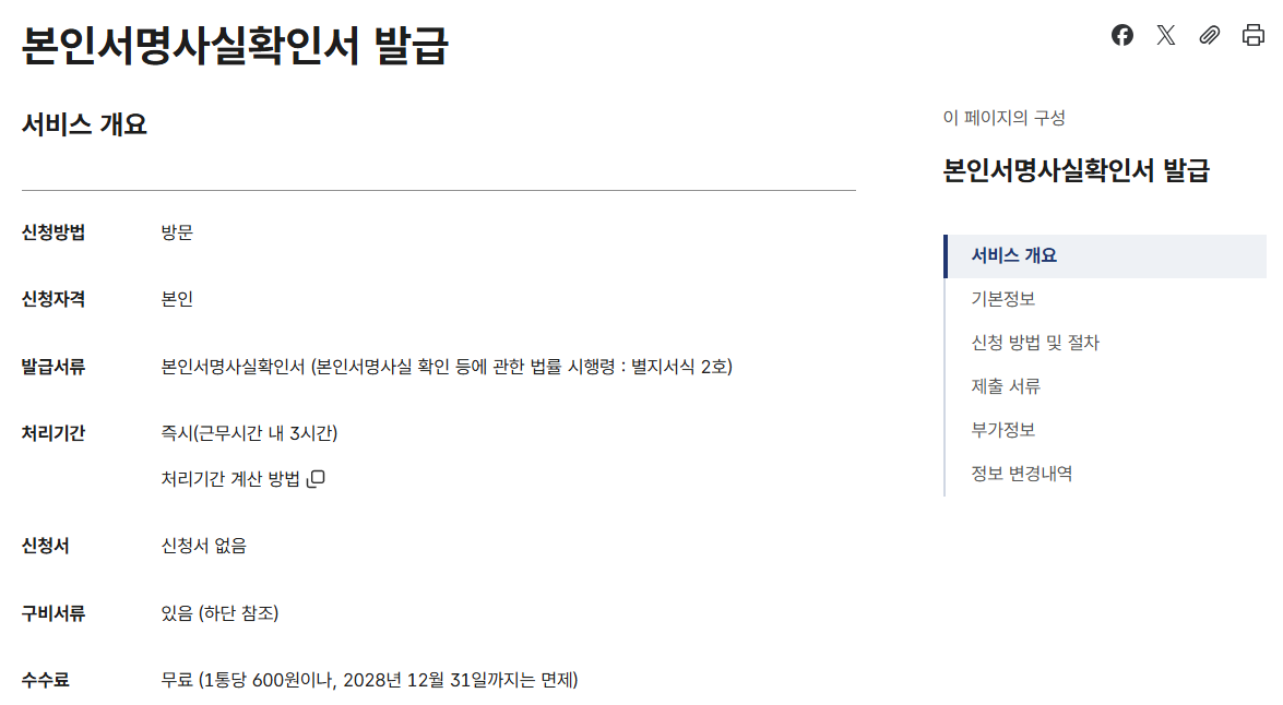 이 문서는 기존 인감증명서를 대체할 수 있는 공공기관용 서류로, 본인이 서명했다는 사실을 법적으로 증명하는 문서입니다. 도장을 사용하는 인감증명과 달리 서명으로 본인을 인증하는 방식이라, 도장 분실이나 위조 위험이 줄어들고 훨씬 간편합니다.