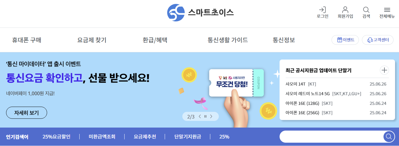 스마트초이스는 통합 플랫폼으로, 여러 통신사를 함께 조회할 수 있다는 점이 큰 장점입니다.