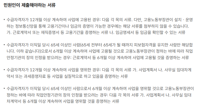 - 일용근로자: 고용확인서, 출근부, 임금명세서 등