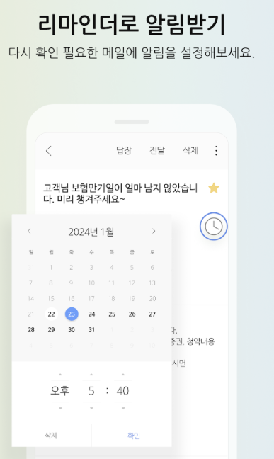 앱 설치 후 설정에서 푸시 알림을 활성화하면 새로운 메일이 도착할 때 즉시 알림을 받을 수 있어 빠른 대응이 가능합니다.
