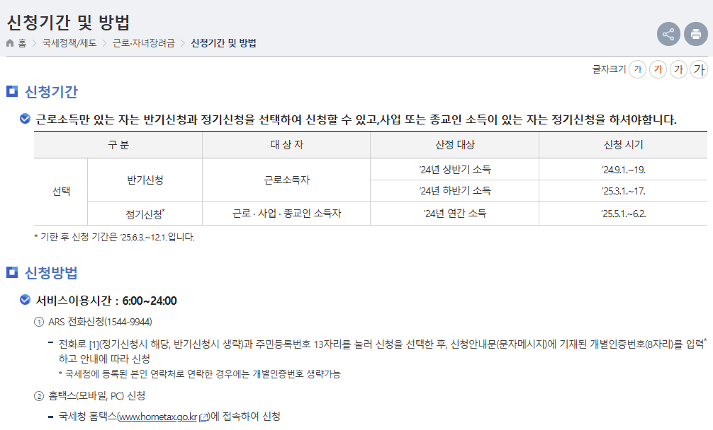 | 신청 방법 | 홈택스, 손택스 앱, 세무서 방문 등 |