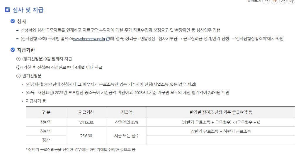 근로 장려금 지급 대상자 확인 바로가기 (hometax.go.kr)