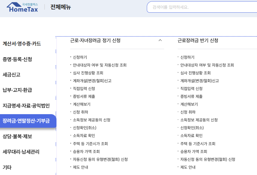 - [My홈택스] → [근로장려금/자녀장려금] 클릭