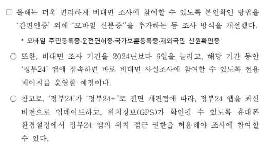 비대면 방식에 참여하지 않은 세대는 9월부터 방문조사 대상이 되며, 이때는 이·통장 또는 동사무소 직원이 직접 거주지를 방문하게 됩니다. 하지만 모바일을 통해 비대면 참여를 완료한 세대는 일반적으로 방문조사 대상에서 제외되므로, 시간 절약과 불편함을 줄이기 위해 비대면 참여가 적극 권장됩니다.
