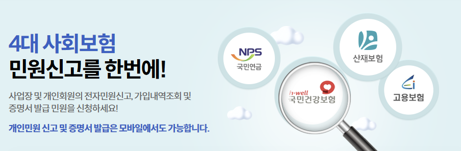 이 사이트는 4대보험 관련 업무를 통합 처리하는 공식 포털이므로 안전하게 이용할 수 있습니다.