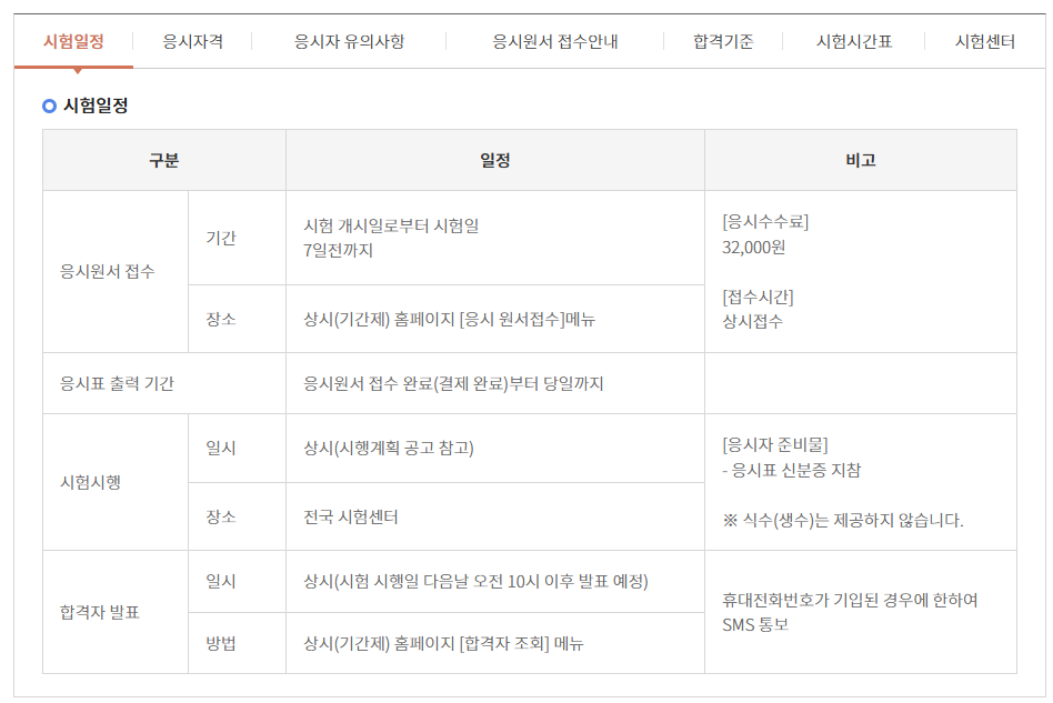 | 1 | 국가시험원 홈페이지에서 일정 확인 |