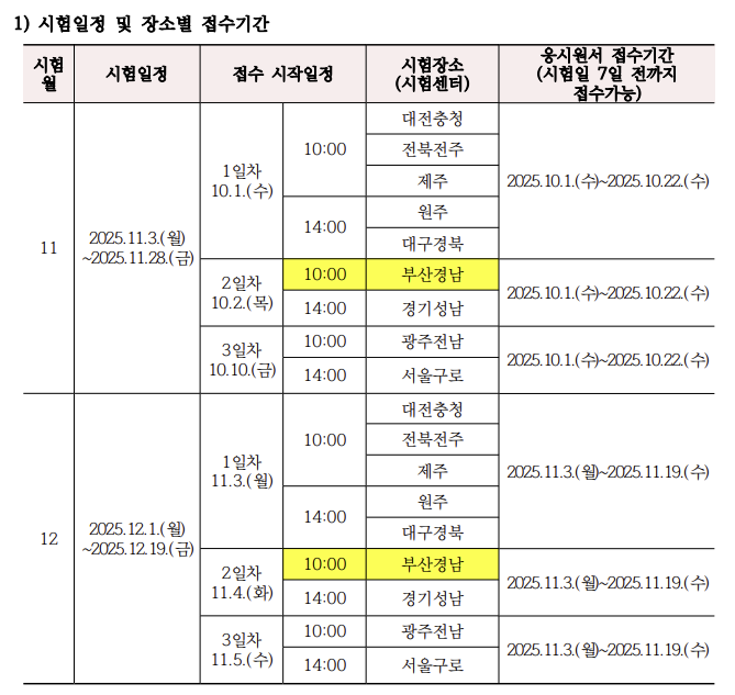 따라서 상반기에 한 번, 하반기에 한 번 응시 기회가 있다고 생각하면 이해하기 쉽습니다. 시험은 전국 주요 도시에서 동일한 날 진행됩니다.