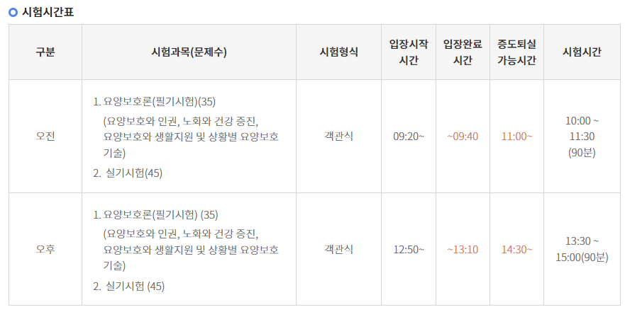 - 필기시험: 객관식 문제로 출제되며, 노인학, 기초간호학, 요양 제도와 법규 등을 다룹니다.