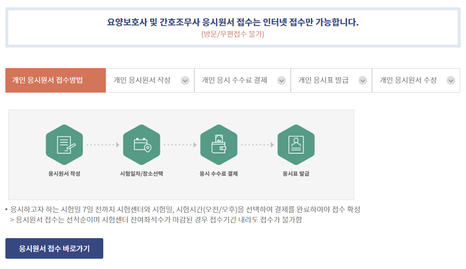 - 인터넷 접수: 국가시험원 홈페이지에서 회원가입 후 신청합니다.