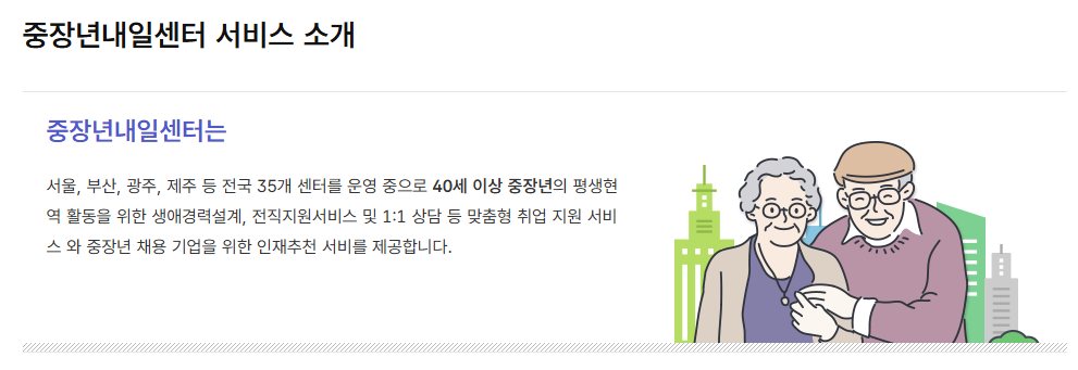 중장년 일자리 지원센터 바로가기 (work24.go.kr)