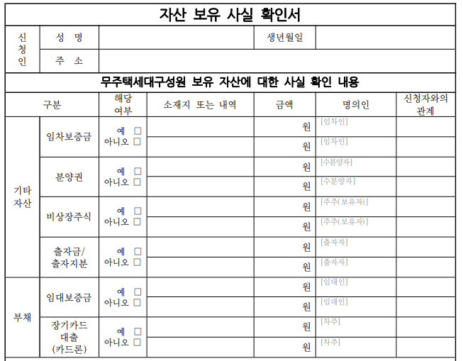 자산보유 사실확인서 작성방법