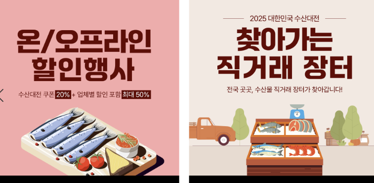 - 수산물 상품권 할인: 구매 금액의 20%까지 할인 가능, 1인당 최대 2만 원 혜택