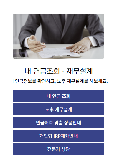 | 통합연금 | 여러 연금 현황을 한 번에 확인 가능 |
