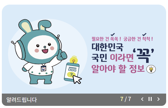 - 알림 서비스: 국민이 필요한 행정 정보(세금, 요금, 복지, 건강 등)를 사전에 알려주는 기능