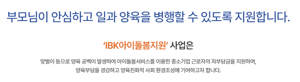 맞벌이 부부나 한부모 가정의 가장 큰 고민 중 하나는 아이를 안전하게 맡길 수 있는 시간과 장소입니다. 특히 초등학교 저학년이나 영유아 자녀를 둔 가정에서는 부모가 일을 하는 동안 돌봄 공백이 생기는 경우가 많습니다. 이런 문제를 해결하기 위해 정부는 아이돌봄서비스 제도를 운영하고 있으며, 일부 은행이나 재단에서도 이를 보완하는 형태로 지원금을 제공하고 있습니다. 그중 기업은행은 사회공헌 차원에서 일정 기간 동안 돌봄지원 사업을 진행해 부모님들의 부담을 덜어주고 있습니다.